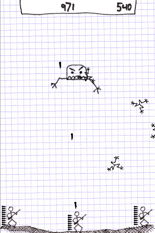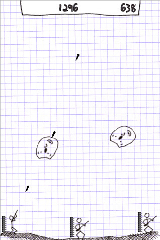 1、這款遊戲雖然看起來畫面簡單,玩起來可是一點都不馬虎呢!遊戲一開始上方會出現很多敵人,敵人會不斷的丟下炸彈。