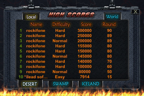 遊戲結束後當然還是少不了排行榜,看一下第一名竟然守到90波,真是太不可思議了...愛瘋玩半天也頂多守到30波而已...歡迎大家來挑戰吧!高手也可以來分享一下心得喔!