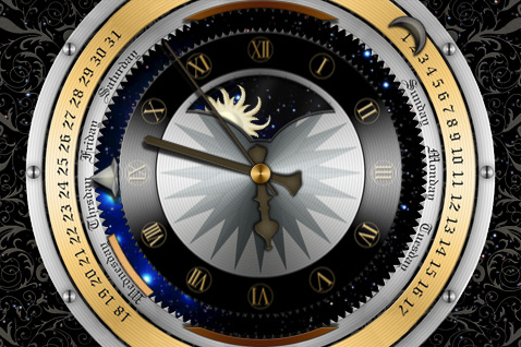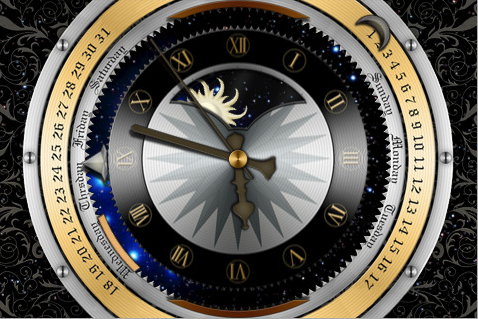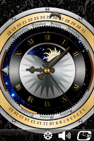 點選進此應用程式之後,即可看到一款高級手錶的介面,在手錶最外面一層金色的部分,就是顯示今日日期的地方。