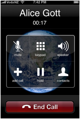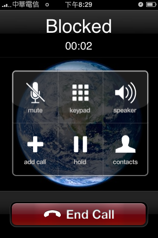 當您選擇確定之後,您可以將此程式關掉沒關係,接下來就是等待囉!,等電話打來那一刻,就是您解脫之時啦!如下圖所示,電話打來的圖片,跟真的iPhone電話一樣呢!更妙的是,電話裡是有人在講話的耶!本來以為裡面的人是講英文,可是聽到後來發現,他的語言似乎又有點像是法文之類的……