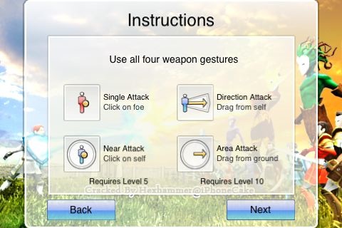 技能的使用方式很輕鬆,一共有四種技能,隨著不同的技能,按的方式也會不一樣,第一種是直接點擊敵人,這是最普通的攻擊;第二種是從自己的身上畫出一條線,就可以對一直線的人進行攻擊;第三種是點自己,就可對周圍的敵人進行攻擊;最後是再要攻擊的地方劃線,就可進行範圍攻擊。