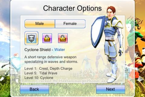 一共有男女兩位英雄可以選擇,等到過到後面的關卡後,就可選擇魔法屬性,一開始只能選擇水屬性魔法。