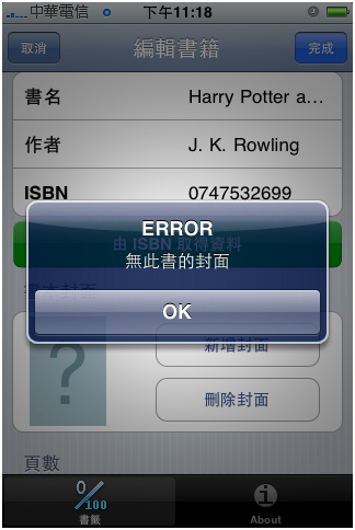 不過,有時候ISBN僅能抓到書名、作者資訊,但無法抓到封面圖片!如下圖所示,當他抓不到封面圖片時,會出現以下對話方塊。