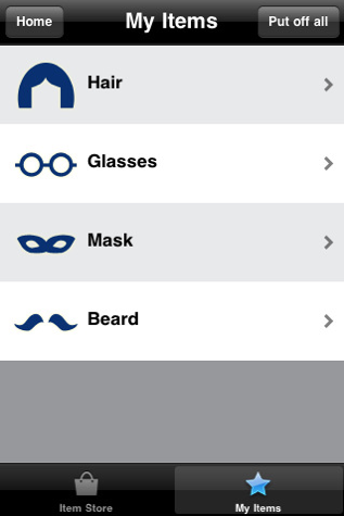 有趣的是,連點螢幕兩下會出現眼鏡喔~ 超逼真呢!更新後的版本還可以加上頭髮、眼鏡、面具以及鬍子哦!超有趣的呢XDDD