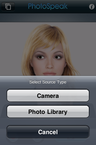 首先先拍攝一張臉朝正面的大頭照~ 按右下角的相機圖示,選「Camera」即開啟相機功能,或是選「Photo Library」便可以從您的相簿選取圖片~