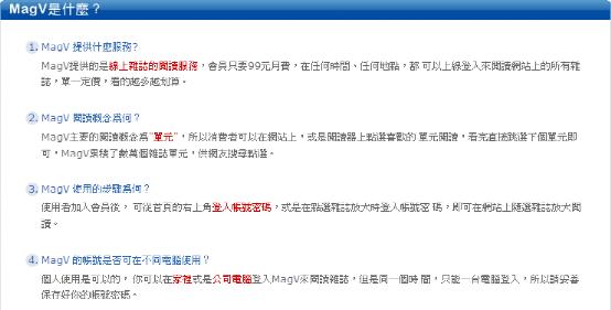 首先說明一下MagV的收費方式為單一定價-1個月99元無限閱讀,看的越多越划算。因此原本已有MagV會員帳號的朋友們,千萬別錯過現在的iPhone閱讀平台^___^