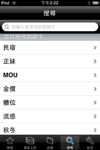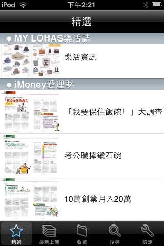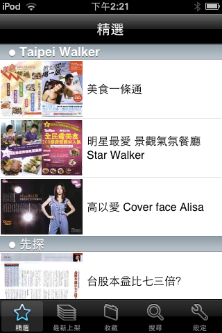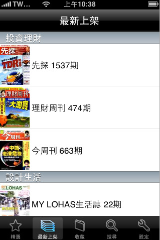 其他主要的功能(都在螢幕下方)還有:「最新上架」、「收藏」、「搜尋」、「設定」