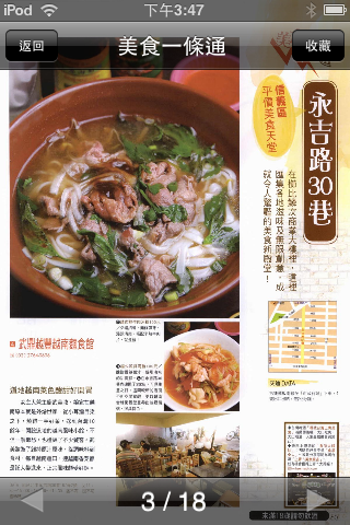 閱讀雜誌時,輕點螢幕一下可「返回」前一頁或「收藏」目前頁面;輕點兩下則可放大觀看細部內容~