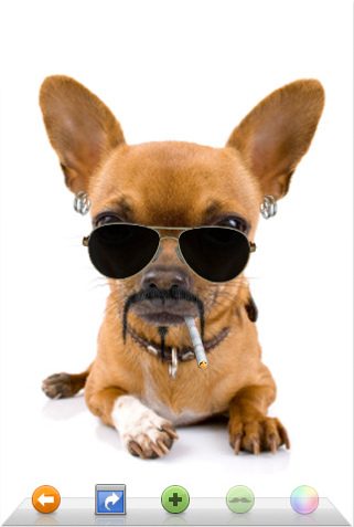 對了,鬍子不只可以長在人身上,舉凡會呼吸的生物,像是小狗、小貓、小老虎,都是有鬍子的,替小動物們增加一些美麗的「配件」也蠻有趣的喔!此程式的iTunes截圖中有張合成的小狗圖片就還蠻不錯的,和大家分享~