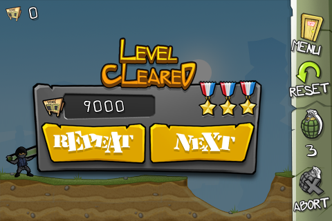 每一局遊戲結束時,剩下的手榴彈數目越多,會加越多分喔!還會依你的分數幫你分等級喔!拿到三面金牌,表示你很厲害