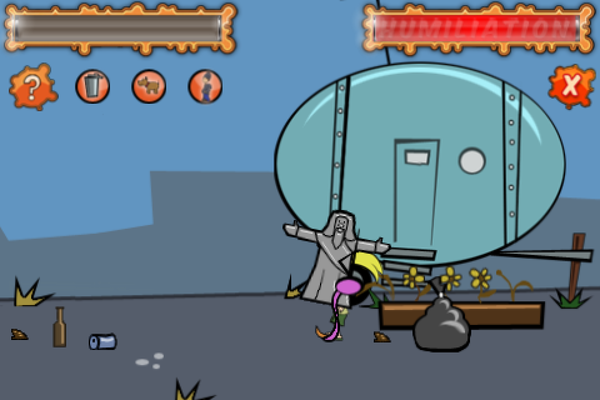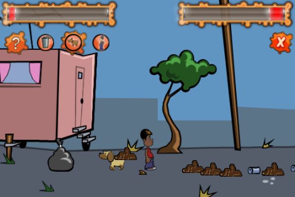 通常是由您這裡先發,可以丟的東西包括地上的大便、空罐子、酒瓶...等,開始丟之前,這些物品會一閃一閃發光,您只要走過去點一下,就代表撿起此物品