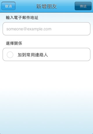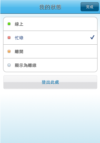 如果想新增朋友,就在上圖按左上角的「+」;而想要更改顯示狀態則點右上角的名字按鍵(可惜無法更改暱稱)。哈哈~還有如果你跟我一樣,常掛離線假裝不在線上,也是在這裡切換就可以啦