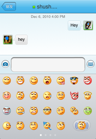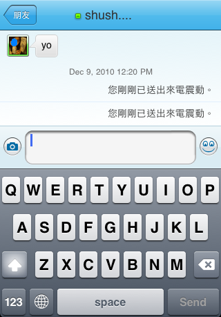 iPhone版的MSN也一樣有許多可愛的表情符號可以使用,右下角還有"震動"鈕,哈哈哈~~~