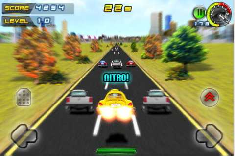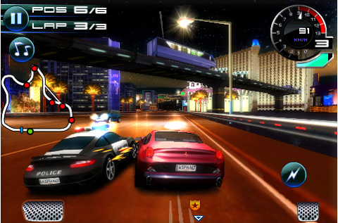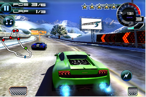 另一個大作賽車遊戲,當然就是Gameloft的「Asphalt 5」啦~屬於難度較高的賽車遊戲哦!操作起來也很順暢,路上還有道具跟錢可以吃,提升遊戲的變化性,如果跟對方來車來個對撞的話,也會有精采的飛車特效哦!而遊戲內的歌曲也是一大賣點,可以在車上戴著耳機,用力給它大戰幾回合!