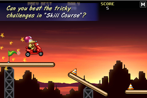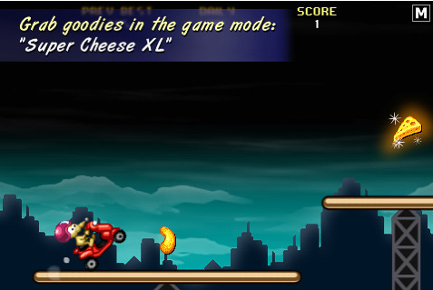 如果不想玩那麼刺激的賽車遊戲,也可以選擇可愛的小品賽車遊戲哦!騎著摩托車飛躍天際吧~可以選擇各種不同的模式,第一種就是拚命吃起司、第二種是要一直加到油、第三種是要躲過障礙物,最後則是有特殊道具可以使用,難度其實還頗高的,會讓人想要一直挑戰下去,打發時間也是不錯的選擇哦^^