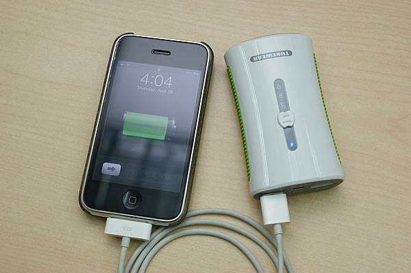 當iPhone剛接上電池時,並不會立即進行充電;而是當我們將開關推至「ON」時才啟動充電,同時充電狀態的藍燈也會亮起來。這樣的OFF/ON開關,我想應該是為了手電筒而設計,也是這個電池的另一個特色