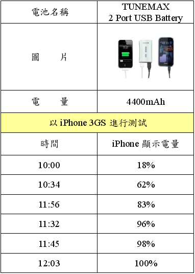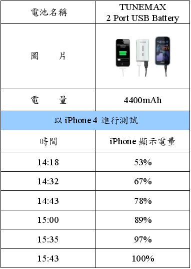 首先是電量最高(4400mAh)的「TUNEMAX 2 Port USB Battery」,也就是筆者所謂的間接外接式電池,需要以USB連接才能幫iPhone充電