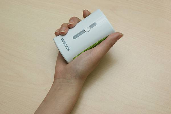 電池的腹部及側面做了防滑設計,握在手裡滿有安全感,可以看出尺寸也不算太大