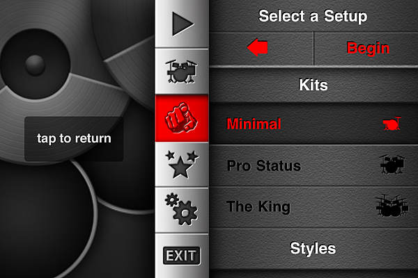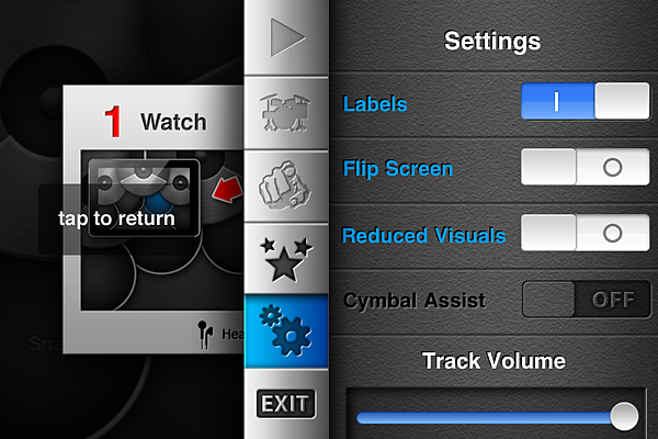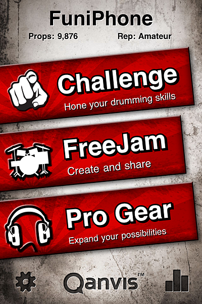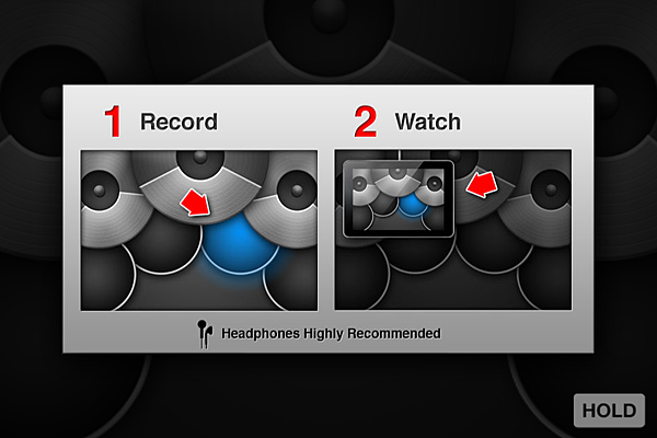 回到主選單,FreeJam就是自由創作囉~隨著音樂的節奏,想怎麼打就怎麼打,如果是iPad加上特製鼓棒,應該會很有感覺吧