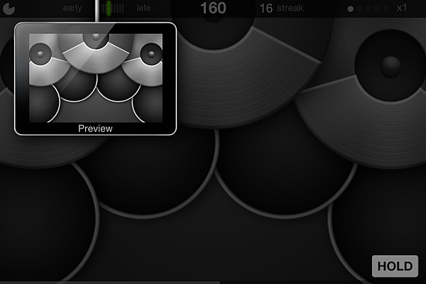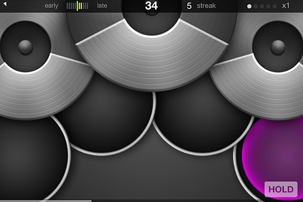 一個準確的打擊會得到10分,中間上方的80是分數,streak是打擊數,x1是指分數的倍數