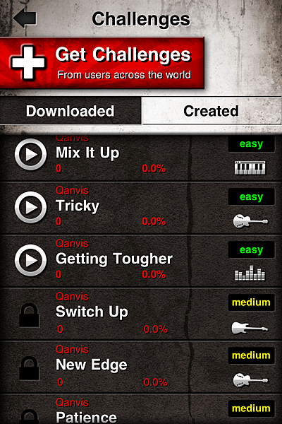除了有許多的練習樂曲外,也可以自己創作哦!按下Created的Create a Challenge