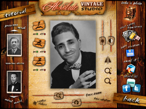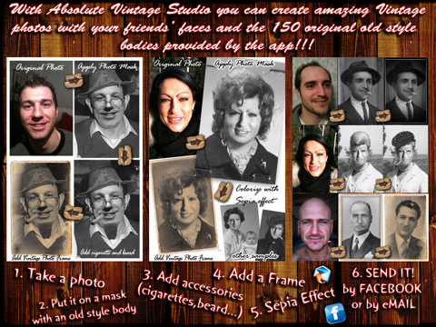 喜歡超級復古風情的照片嗎?大家可別錯過這個修圖程式這個程式可以把任何一個人都修飾成超級復古的長相,當然基本的旋轉、變焦、和鏡面效果都有。必較特別是內建150種不同的男女長相,3種復古的風格以及20種配件飾品,喜歡特別一點的修圖程式可別錯過這個程式喔!