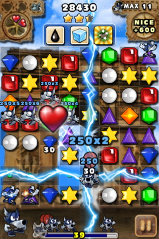 這個消除遊戲挺別的主要是要捕捉大狼狗,讓大狼狗重重摔到地面來,每個關卡一定要捕捉到規定的數量,如果讓大狼狗順利爬到頂端,那遊戲就會扣左上面的血量,等到血用完那遊戲也就輸了!還有許多特殊小道具,大家可以下載來玩玩看喔!