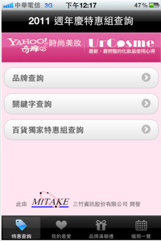 Tag: iPhone, iPod touch, iPad, App Store, 百貨公司, 週年慶, 血拼, 特價, 化妝, 購物, 方便, 分類