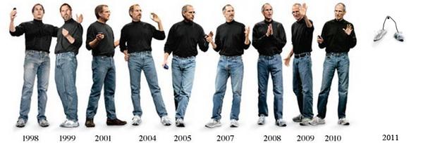賈伯斯這輩子最喜歡的穿著就是黑色上衣+合身牛仔褲: