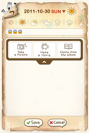 文字喔~當然每天的日記也可以選擇天氣(右圖)