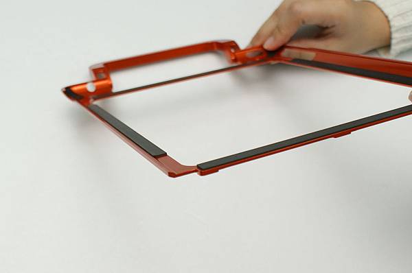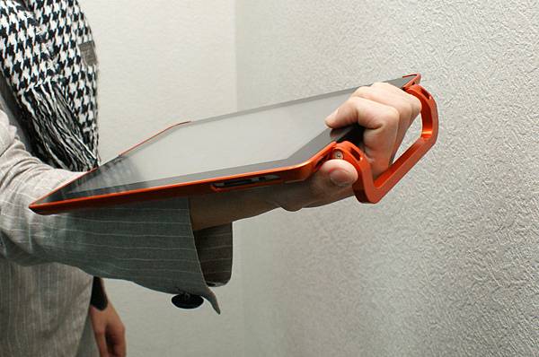 Esoterism品牌出品的鋁框,一直是我最欣賞的鋁框設計之一。在 iPhone 鋁框已經滿街都是情況下,倒是沒有看過專為 iPad 2 設計的鋁框,頗為新奇。這次見識到 iPad 2 鋁框,不僅因為份量大 (相較於iPhone鋁框) 頗有氣勢,大片的鋁材看來也更有質感!手提把的設計也十分有趣,充滿許多妙用。鋁框搭配贈送的碳纖維背貼很有特色,如果是我個人應該會考慮貼上。不過可惜可惜呀~因為產量少所以也使得售價也相對的高,想要入手擁有還是得有一股衝動呀 (握拳)