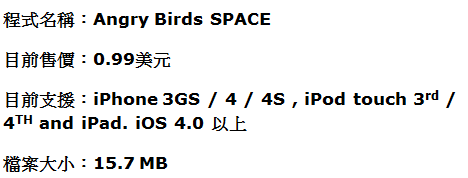 圖片來源:iTunes / App Store / Games / Rovio Mobile Ltd. / Angry Birds Space