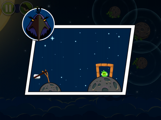 最後給大家看看幾個關卡吧,像是下圖的雙星球,引力方向會改變小鳥們的飛行角度,需要好好調整彈道呢!