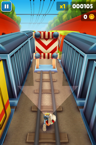 鐵軌上有許多的障礙,玩家必須要閃過去。
