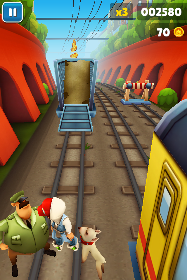 喜歡「Temple Run」這類型的跑酷遊戲的朋友們絕對不能錯過這個遊戲!Subway Surfers的玩法也相當類似,左右上下滑動控制人物跑動方向,跟Temple Run比較不同的是,Subway Surfers是採取三個跑道的地圖,沒有左右轉的方向,畫面及流暢度呈現都相當高,是身為跑酷迷一定必備的遊戲!