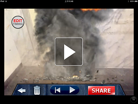 直接用Movie Fx Club+內建拍攝一段影片,然後程式會幫忙處理,影片中就能有爆破的效果啦!