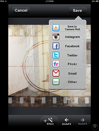 InstaEffect FX - Pic FX for Instagram 最主要內建不少濾鏡效果可用,濾鏡的風格沒有特別偏向何種種類,選擇性頗為多元。