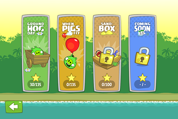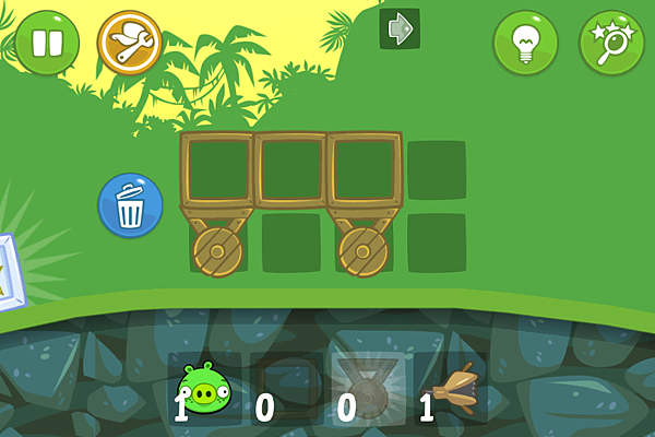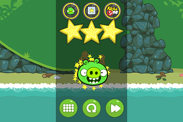 筆者目前也只將第一大關過完一半而已,自己本身會有三顆星強迫症,會想要將每個關卡都拿到完美才會換下一關,之前大家在討論為什麼Angry Bird會風靡全球的原因時,就有個理由是說Angry Bird的關卡及評分機制設計能夠滿足所有使用者的需求,會有目標族群的限制,像是只想打發時間的輕度玩家到以破關為主的重度玩家(就像我),都不會對它失望,這也是Rovio厲害的地方,Bad Piggies也有將這個概念延續下來,延續Angry Bird的風潮,壞蛋豬也準備要席捲世界,推薦這款大作。