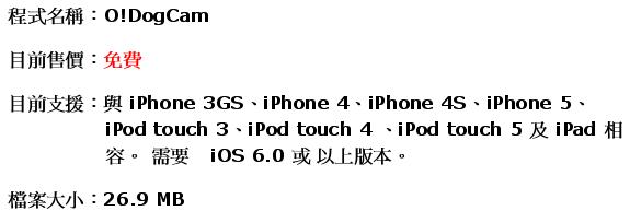 O!DogCam 卻讓這件事情變得簡單了!只要按下照相鈕,程式就會發出各式各樣的搞怪聲音來吸引狗狗注意力,等狗狗面對鏡頭時,只要放開照相鈕就會馬上拍照, 讓你可以很輕鬆的抓到狗狗看鏡頭的一刻。 就我本身的經驗,幾乎10次裡面有7~8次都可以成功呢~YA!