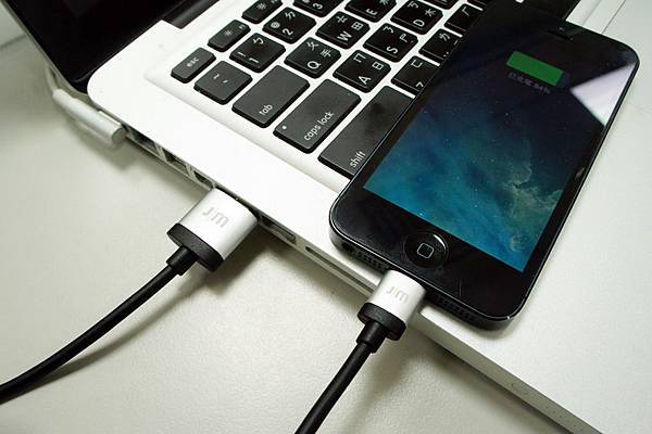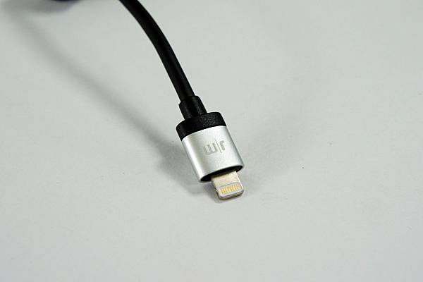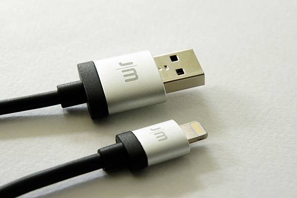 USB及Lightning接頭的細節,鋁合金的材質,上面印有JM標誌,弧形的形狀,看起來質感相當不錯!